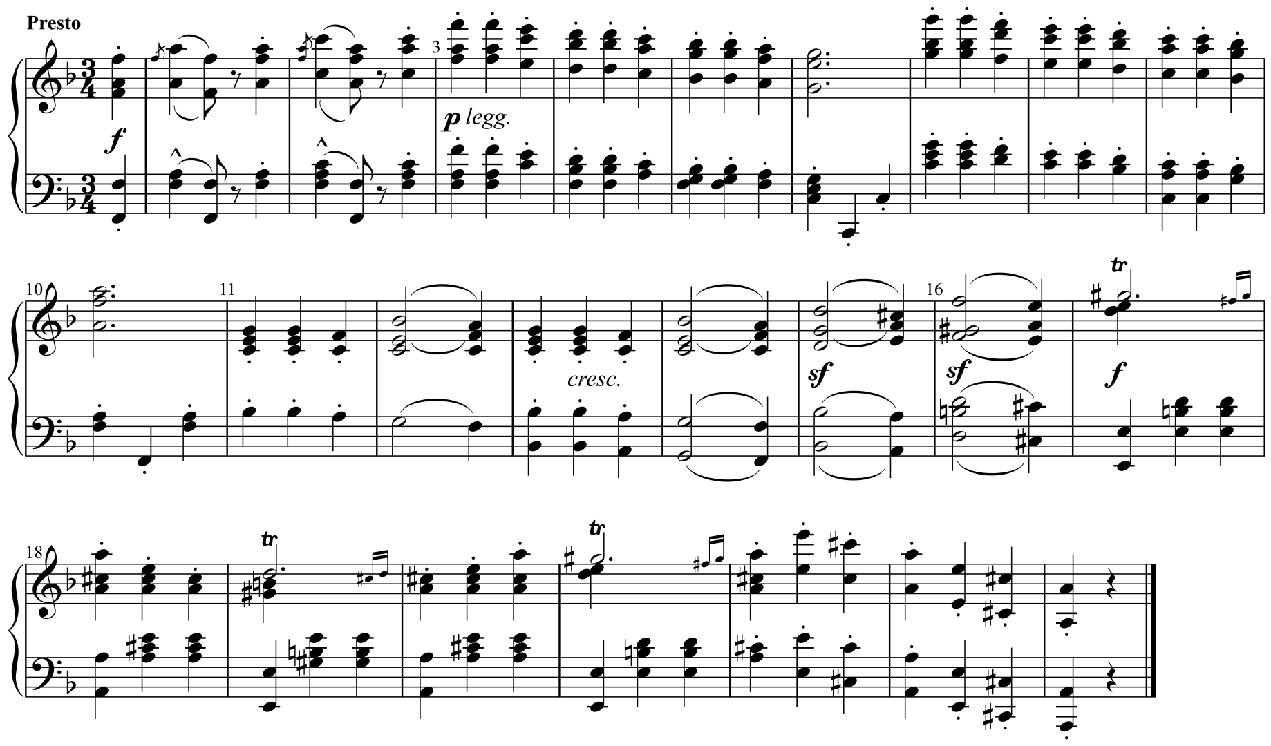 m. 18; PAC (with incomplete cadential progression V - I)